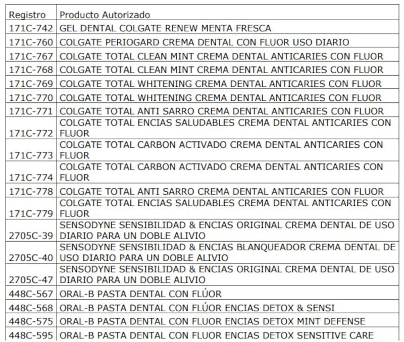 La solicitud además requiere el listado exhaustivo de todos los productos (pastas dentales y otros productos de higiene bucal) que la empresa comercializa o ha comercializado en Chile desde enero de 2024 hasta la fecha, y que contengan fluoruro de estaño en su formulación.
